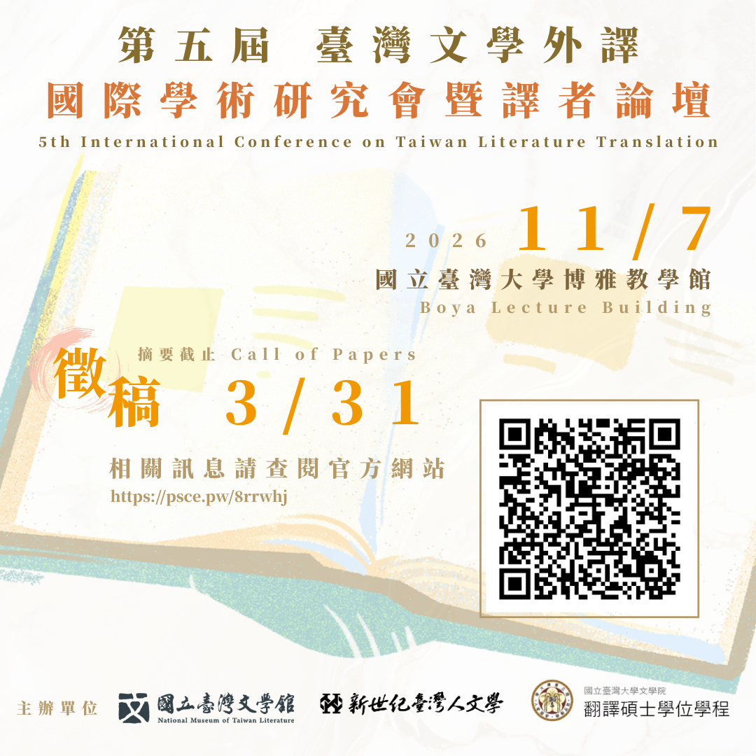 第五屆臺灣文學外譯國際學術研討會徵稿公告(摘要截止:2026年3月31日)