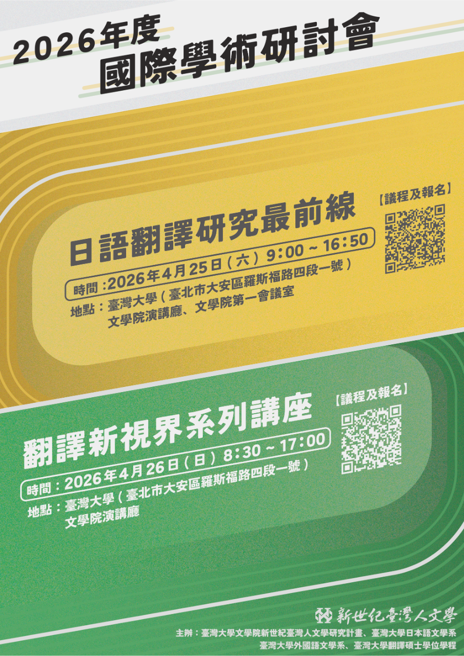 【轉知訊息】2026年度國際學術研討會:日語翻譯研究最前線 x 翻譯新視界